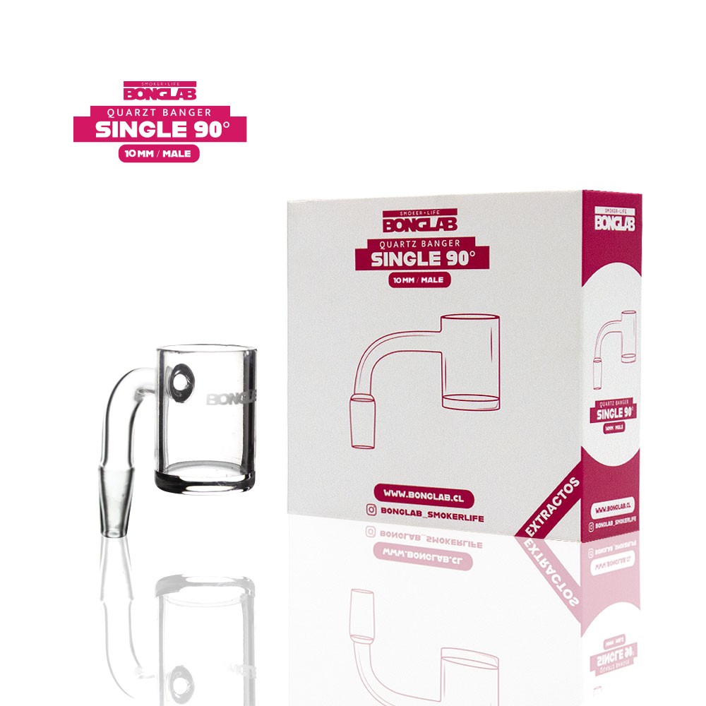 Banger Cuarzo 90° 10mm Bonglab — cuarzo puro 3.5mm, cuenco ~12 mm (0,25–0,35 ml). Óptimo control térmico y sabor. Compatible con carb caps 10 mm. Envío rápido en Chile.