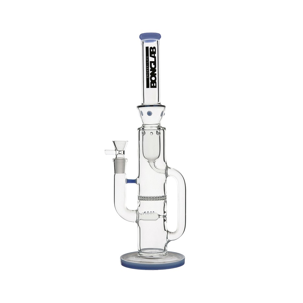 Mad Professor Blue – Bonglab: bong 42 cm con triple percolación (Inline + Tree + Honeycomb), vidrio borosilicato 5 mm, joint 18 mm. Suavidad y filtración superior. Ideal para sesiones limpias en Chile.