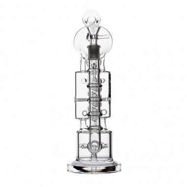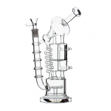 El Space Oddity Clear de BongLab es un bong ergonómico de 28 cm hecho en vidrio de borosilicato de 5 mm, diseñado con un timón percolador de seis puntas, sistemas adicionales de filtración y un resorte termorregulador: ideal para quienes buscan una experiencia de fumada suave, fresca y visualmente impactante.